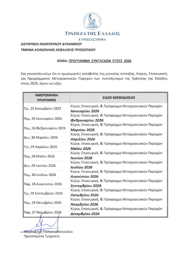 ΠΡΟΓΡΑΜΜΑ ΣΥΝΤΑΞΕΩΝ ΕΤΟΥΣ 2026